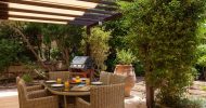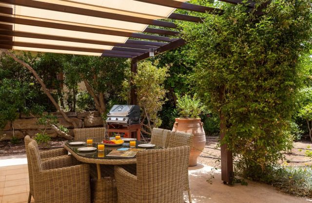 Зона отдыха с летней кухней и барбекю идеальна для тех, кто предпочитает обедать на открытом воздухе или просто хочет расслабиться и провести время с семьей у бассейна.