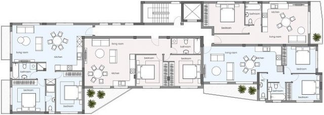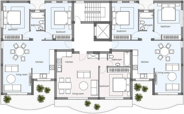 The one- and two- bedroom apartments vary in size, allowing prospective clients and abundance of options to choose from. The small number of residences in each building creates a sense of community and neighborliness among residents, as well as a sense of privacy and security, with the added benefit of a comfortably spaced out home.