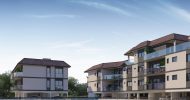 The two buildings of the project sit side by side, coming together to create a stylish façade comprising mixed materials. They are meticulously designed to invoke a sense of timelessness, featuring a classic, tiled roof and warm brick tones accented by darker flourishes and wood elements. The large windows and elegant glass balcony railings add a touch of contemporary to the complex, and also offer sweeping mountain views.