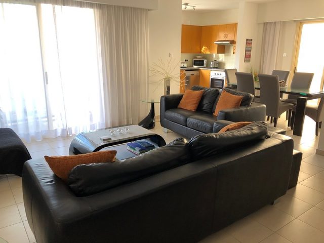 The resort has been designed with the comfort, relaxation and enjoyment in mind, offering a wealth of services and facilities in the area. It is surrounded by beautifully landscaped gardens, has 3 large communal pools and a playground for children. The facilities of this luxury residential complex also include a fully‐equipped private gym, spa complex with in-door swimming pool and sauna, cafeteria, pharmacy, kiosk and beauty salon. Situated in a popular recently developed quiet neighbourhood in the heart of Kato Pafos, it is only a short walk to the tourist area, bustling nightlife, restaurants, Kings Avenue Mall, Paphos Harbour and Archaeological site, sandy beaches and all the amenities.