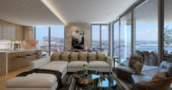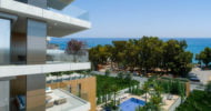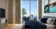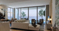 Each apartment offers a magnificent view of the sea and the surrounding city. The windows up to the ceiling allow the light to fill up the whole space, and the azure sea in the background perfectly harmonizes with the warm beige shades in the interior, wooden floors and natural stone finish.