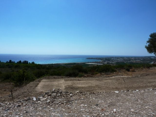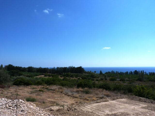 A plot of land of 7420 m2 is located on the edge of a hill opposite the future marina of Paphos. The beautiful sandy beaches of Coral Bay are just 1500 meters away, and Paphos itself is 5 km away. The plot is flat, with dimensions of 74 x 100m, completely private. The altitude is 100 meters, thus avoiding the high humidity of the coastal strip. The site located in front of him is 10 meters lower. The plot offers a magnificent view of the sea and the bay.