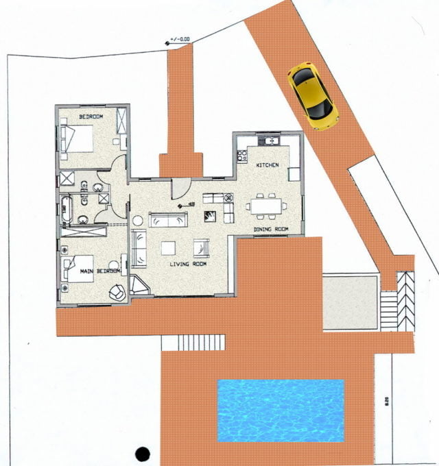 The traditional Cypriot village of Mesa Chorio is located in the foothills above Paphos, and enjoys magnificent views of Paphos coastline. This unspoiled village is ideally situated being just a few minutes drive to Paphos town, harbour and beaches. Local amenities include a supermarket and a couple of coffee shops, bars and restaurants all offering authentic Cypriot hospitality, culture and cuisine. There are 3 very good golf courses within 15 minutes and Paphos International airport is approximately 20 minutes away.