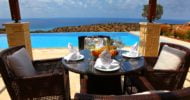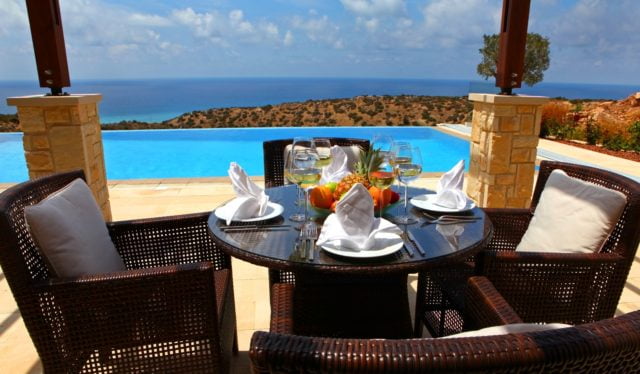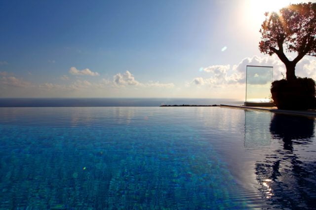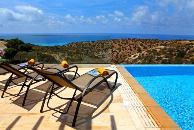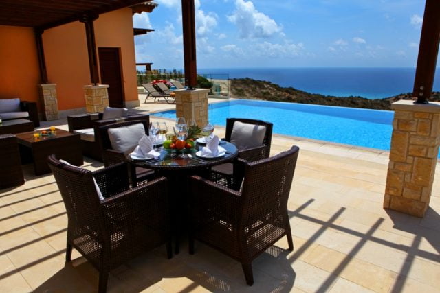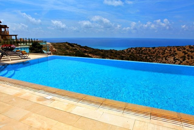 Upon exiting the living and dining areas through the French doors onto the terrace, one will experience amazing 180 degrees Panoramic sea views. There is a large swimming pool with infinity edge on offer and barbeque area to the right. To the left side of the pool facing the Mediterranean Sea, one can enjoy an external sauna with unlimited views out to sea.