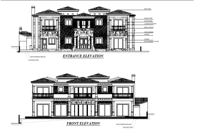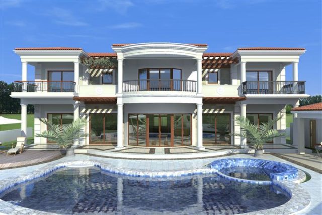 Первый этаж виллы состоит из большой гостиной, спальни, санузлов и просторной столовой с кухней открытого плана. На втором этаже пять спален с собственными санузлами и балконами, дополнительная небольшая кухня с салоном.