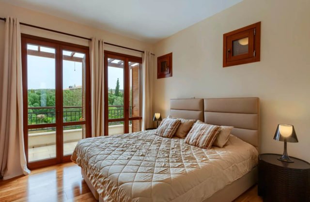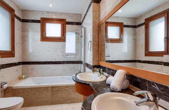 The second bedroom comprises of two single beds, bedside cabinets, sufficient closet space and an en-suite marble bathroom with a bath/shower combination, a single vanity unit and a toilet. The room enjoys excellent views of the Resort and the mountains from the French doors, which lead onto the upstairs veranda.