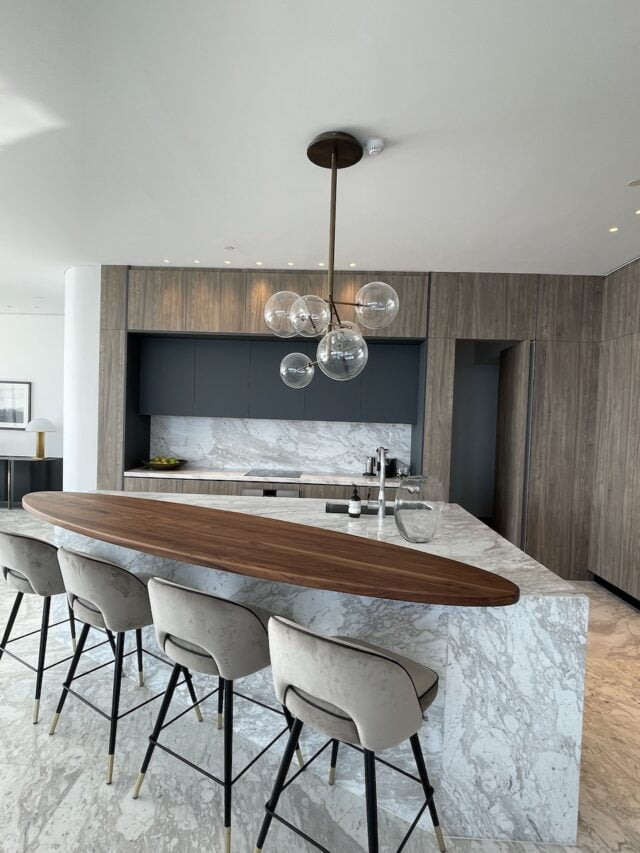 Внимание к деталям имеет первостепенное значение, о чем свидетельствуют полированные мраморные полы и сделанная на заказ кухня, которая может похвастаться бытовой техникой премиум-класса на фоне элегантного мрамора. Для дополнительного удобства дополнительная мини-кухня представляет собой отдельную зону для дополнительных кулинарных занятий, идеально подходящую для развлечений.