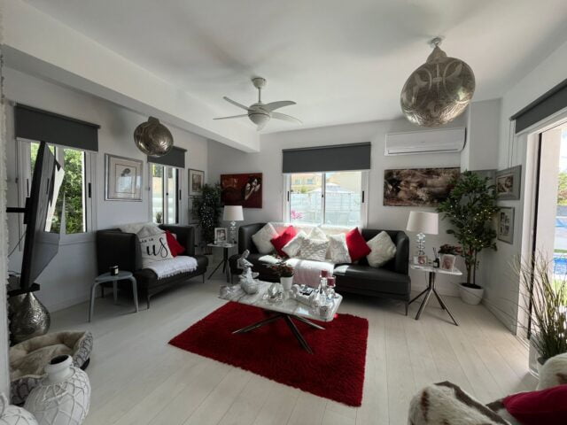 - Вилла оборудована частным бассейном с искусственной травой, новой деревянной террасой и зоной барбекю, что делает её идеальным местом для отдыха и развлечений на свежем воздухе.