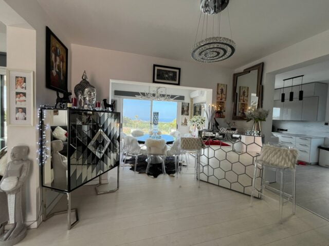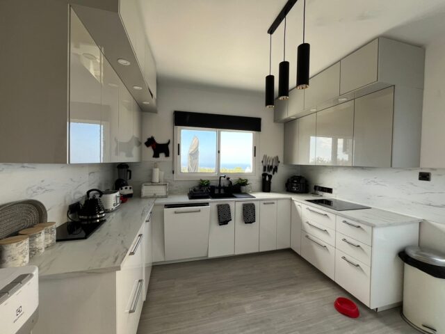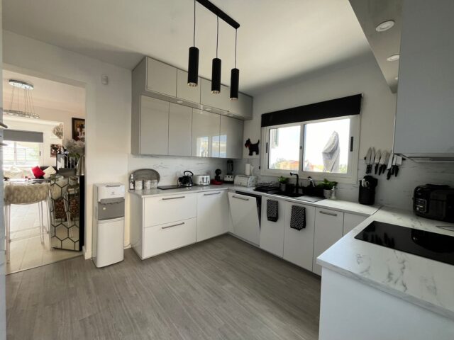 - Вилла обладает открытой планировкой гостиной, столовой и кухни, идеально подходящей для развлечений и семейных встреч. Элегантный ламинат проходит по всему дому, добавляя пространству изысканности.