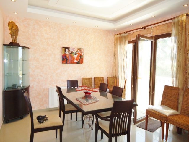 The house is equipped with high-quality appliances, expensive furniture and accessories, double glazed windows, all windows are equipped with blinds and curtains, suspended ceilings and decorative lights, heating throughout the house, air conditioning and TV in all rooms, Russian channels, solar panel for water heating.