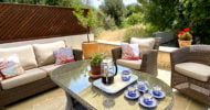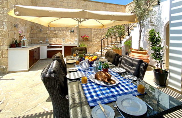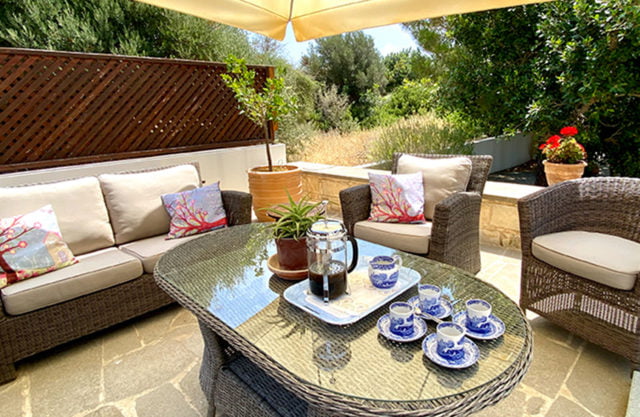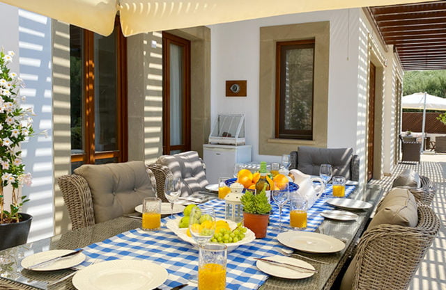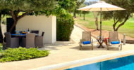 Уникальной особенностью этой виллы является потрясающий внутренний двор с красивой высокой каменной стеной, обеспечивающей уединение и защиту от ветра. Внешняя лестница ведет на террасу на крыше, где есть достаточно места для принятия солнечных ванн или вечернего времяпровождения с потрясающими видами на гольф поля курорта, море и закат.