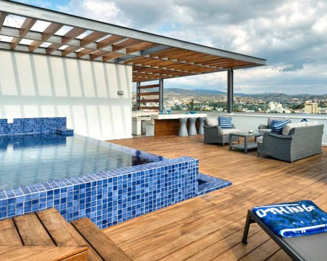 So welcome to this stunning penthouse with spacious private rooftop, marble-tiled pool with jacuzzi, stone floors, barbecue areas and pergolas for shading.