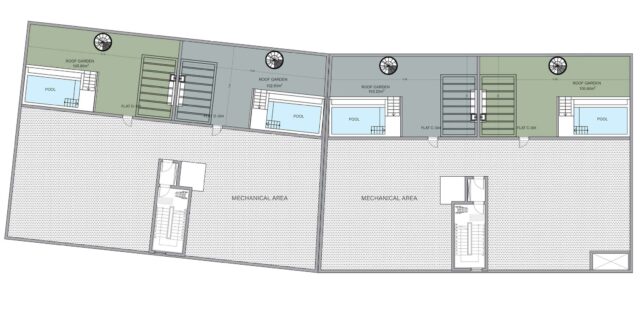 Пентхаусы имеют частные террасы на крыше с бассейнами;