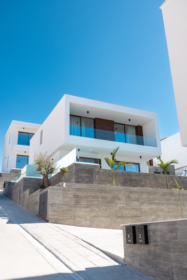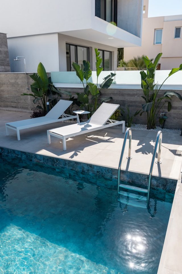 Nestled in Chloraka’s prestigious district, this luxury residences offers 7 remarkable three-bedroom villas within brand new complex in Paphos. With stunning sea views, these modern homes blend seamlessly with the lush Mediterranean surroundings. Just a short walk from the sea, residents can enjoy tranquility and breathtaking sunsets. Close to pristine beaches and upscale hotels, these luxurious villas epitomise seaside living. The sleek architecture features clean facades and minimal ornamentation, harmonising with the natural environment. Perched on a hillside, the villas maximise views of the greenery, creating a peaceful atmosphere. This modern complex provides a range of amenities, including nearby restaurants, shops, schools, and supermarkets, ensuring convenience for residents. Every detail has been meticulously designed, incorporating modern materials like glass, aluminum, and concrete. Expansive windows bathe the interiors in natural light, accentuating the carefully chosen color palette that blends with nature. With spacious layouts and high-end finishes, each villa offers privacy and luxury. From warm wood flooring in the bedrooms to exquisite Italian tiles leading to a private terrace and infinity pool, no detail has been overlooked. Built with sustainability in mind, these sea view villas feature energy-efficient cooling, thermal insulation, and upgraded aluminum. This villa presents an exceptional opportunity to own a one-of-a-kind luxury home in Paphos, combining contemporary design, natural beauty and a prime location.