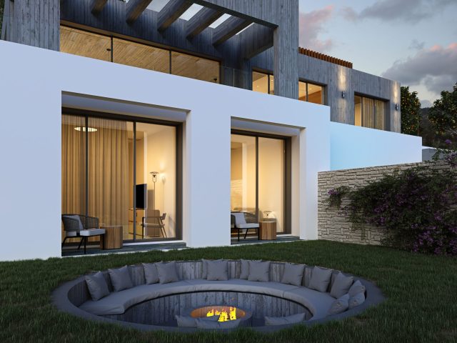 These stunning villas for sale in the Sea Caves area of Paphos are part of the award winning exclusive development of nine luxury villas situated in this tranquil unspoilt region. Nestling amongst olive trees and natural terrain, just a stone throw from Akamas National park the development is set in a stunning location in one of the most picturesque spots of Paphos with breath-taking sea views over the Mediterranean. This development is only a 15 minute walk to the enchanting fishing harbour of St George and its beautiful beach cove. It is also a mere a 3-minute drive to the famous blue flag awarded Coral Bay Beach and the small towns amenities which include bars, restaurants and shops.