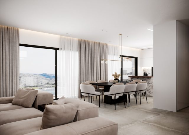 This new elegant villa with three bedrooms set on the Minthis-Episkopi hillside. The villa enjoy a privileged location to capture stunning sea views and great views of the surrounding area. It’s part of brand new project consists of 10 modern luxury villas of three different types in a new built area.