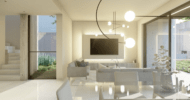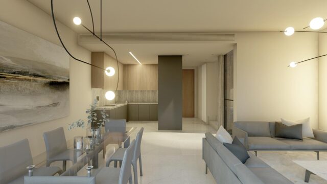 Embrace sustainability while saving on energy bills. LED Dimmable Lighting: Create the ideal ambiance with integrated LED downlights and strips. Balconies, Terraces, and Verandas: Enjoy the outdoors on light grey anti-slip ceramic tiles (60×120) and slimline aluminum doors and windows. Extensive Landscape Garden: A lush oasis with a programmable irrigation system.