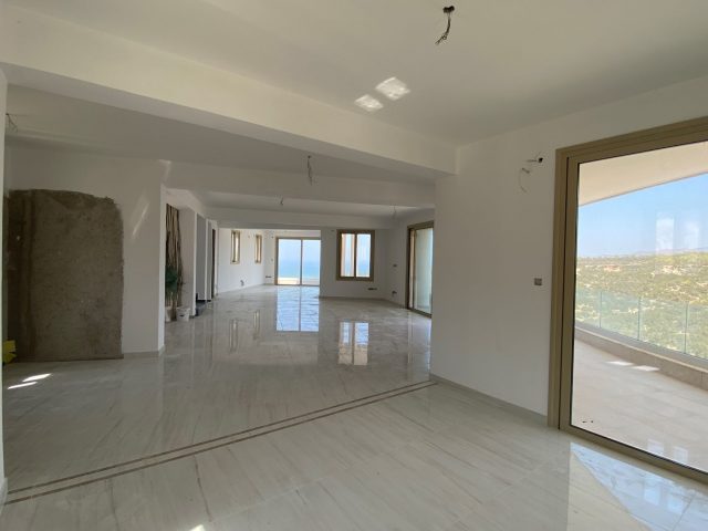 Вилла состоит из трёх уровней, которые соединяются между собой лифтом и широкой лестницей с гранитными ступенями. Вход в дом начинается с главного уровня, на котором находится большая гостиная, столовая с кухней открытого плана, санузел, большая крытая веранда с видом на море и горы, спальня с санузлом. На нижнем уровне две спальни с санузлами (джакузи и ванные), вспомогательная кухня, кладовая, игровая комната выход на крытую террасу, сад и бассейн. На верхнем этаже три большого размера спальни с санузлами и выходом на большой крытый балкон с великолепными видами. Большой участок с ландшафтным дизайном и спуском к подножию холма. Цвет, фактуру, материал межкомнатных дверей, кухонь и шкафов можно выбрать на своё усмотрение из предлагаемой гаммы.