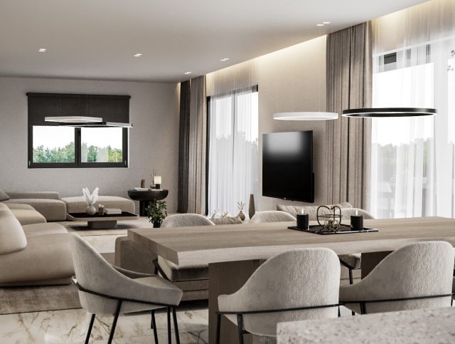In keeping with what you’d expect from modern luxury villas for sale in Cyprus, these villas will have top quality finishes including a beautiful, fitted kitchen with natural stone worksurfaces and high-quality fittings throughout.