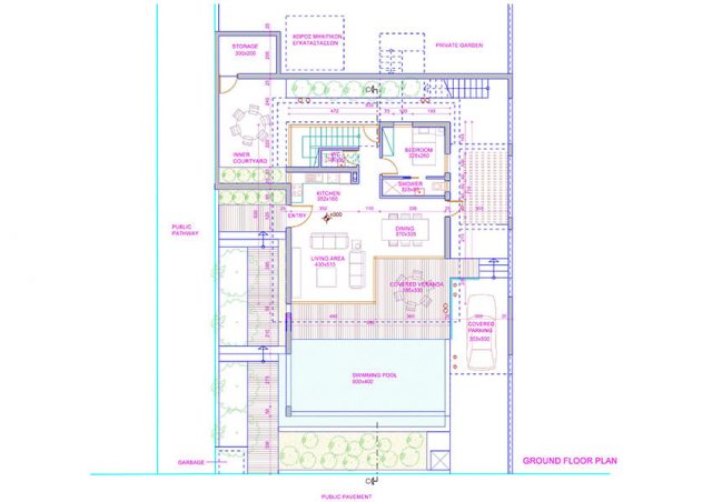 The ground floor of the house includes a spacious living room, dining room with open plan kitchen, guest bathroom. On the upper floor there are three bedrooms (master one en-suite) and a family bathroom. All three bedrooms have access to a large covered balcony overlooking the sea.
