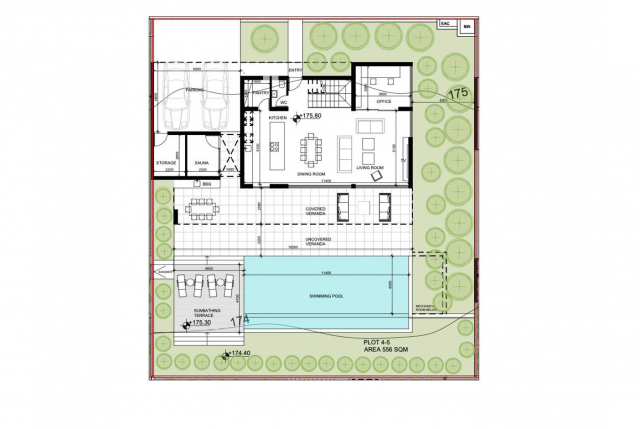 Предлагаемая вилла построена на участке 556 м2, крытая внутренняя площадь 200 м2, с крытыми балконами 51 м2, крытая парковка 30 м2, крытая площадка для барбекю рядом с бассейном, место для сауны, механическое помещение и кладовая 10 м2 и многие другие полезные помещения, которые показаны на прилагаемом плане. Дом сдается в июле 2023 года.