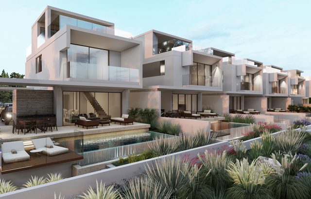 Недвижимость современная и просторная, с панорамным видом на море из сада на крыше. Каждая вилла имеет 3 спальни, 3 ванные комнаты и полностью оборудованную кухню, шкафы, скрытые блоки VRV для охлаждения и подогрев полов.