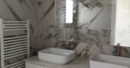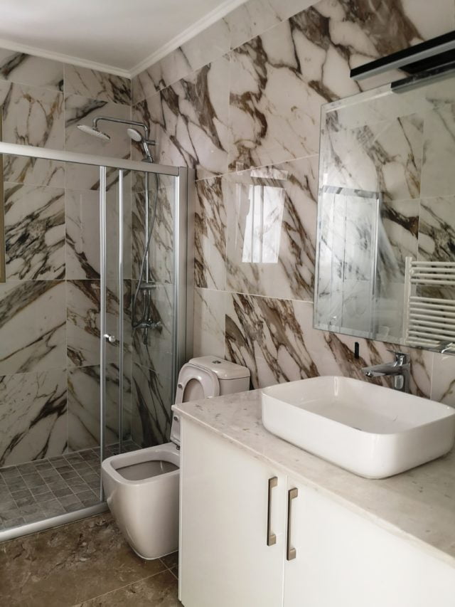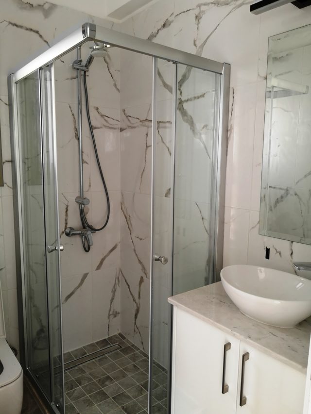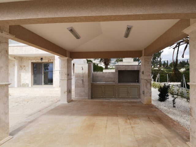 The proposed villa is located in a quiet place of this wonderful area, completely decorated with Syrian stone, has a large beautiful garden, a swimming pool with barbecue area, covered parking and spacious additional territory. On the ground floor of the house there is a large living room, a dining room with an open plan kitchen, a bathroom, a bedroom with a private bathroom, a covered porch. On the second floor there are three bedrooms also with private bathrooms and balconies with sea views. From one balcony, a staircase leads to the rooftop terrace with magnificent sea views.