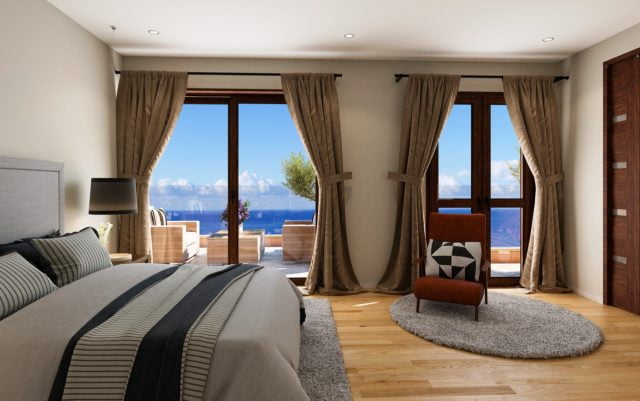 The spacious and airy first floor lobby leads to the magnificent master bedroom with panoramic glass doors opening on to a large terrace with unparalleled views of the Mediterranean and magnificent sunrise and sunset views over the horizon.