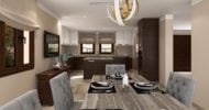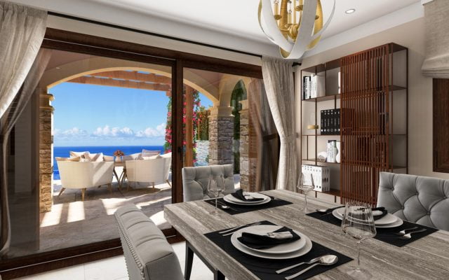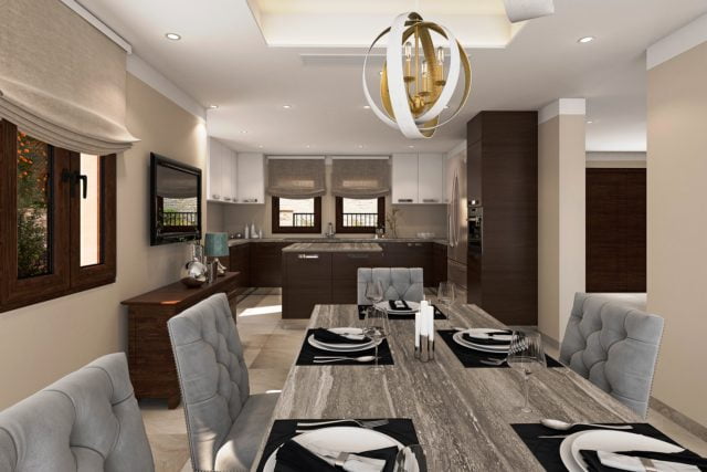 The properties feature 5m x 10m infinity edge swimming pool, high quality Italian-style kitchens and integrated, stainless steel-finish appliances, along with Crema Tea Marble shower rooms and marble or parquet flooring throughout.