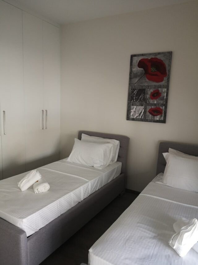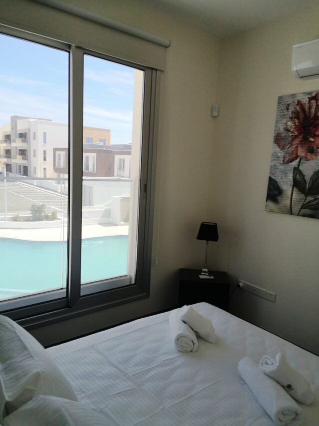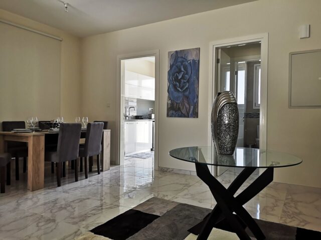 The villa is located at the heart of the city of Paphos close to all major amenities such as the Paphos Harbour, the tourist area and the Kings Avenue Mall. The property enjoys comfortable living areas with covered verandas as well as a large communal swimming pool with a separate kids’ pool for a wonderful leisure experience.