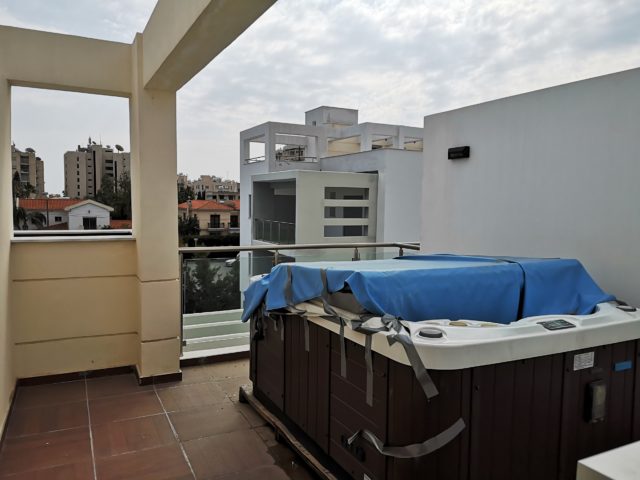 This house is part of a complex of luxury townhouses located near the sea in Limassol. You can get into the project only through automatic gates. Entrance through them leads to the parking spaces for the residents of the complex. Entrance to the house begins with a spacious living room with access to a covered veranda, at the same level there is a separate fully equipped kitchen with new appliances with access to the back patio and a guest WC. A convenient staircase leads to the first floor, where there are 2 bedrooms and a family bathroom. There is a sauna on the second level, and an outdoor jacuzzi is installed on the roof terrace. The house has never been used, it is in a completely new condition.