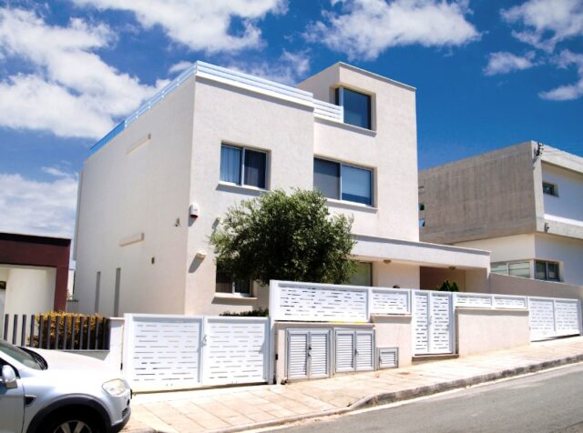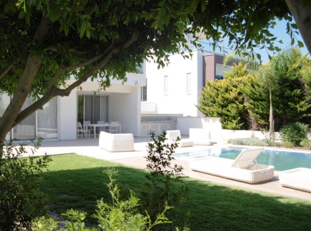 This is a unique residence built to the highest standards in one of Limassol’s most sought-after locations, Moutagiaka area. Affording the ultimate in luxury family living and offering a superb balance of both formal and relaxed living spaces, this villa is a perfectly designed family home. This exclusive location offers lovely views of the sea and surrounding countryside and is close to the beach and all amenities. Supermarkets and mini-markets, bakery, K-Cineplex cinema, beach cafes and restaurants are all within 5 minutes’ drive. Limassol City Centre is only a short drive (5-10 minutes), private schools (Grammar School, Heritage & Foley’s all within a radius of 10 – 15 minutes drive. A comfortable, inviting and full of style living space that is suitable for enjoying family time and entertaining loved ones. Just a baclony door away lies the lovely patio area where you can enjoy the Cyprus’s warm sunny days next by your own private overflow swimming pool.
