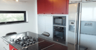 Fully equipped kitchen with equipped appliances, electric and gas stove