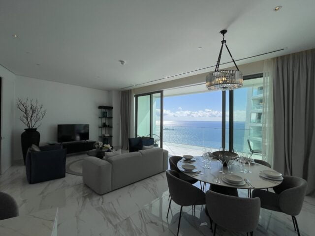 As you enter the apartment, you’ll find yourself in the spacious living area, which could tastefully decorated with comfortable sofas, a coffee table, and a large TV. The living room leads to an open-plan dining area and a kitchen, complete with all the appliances you need to prepare delicious meals during your stay.