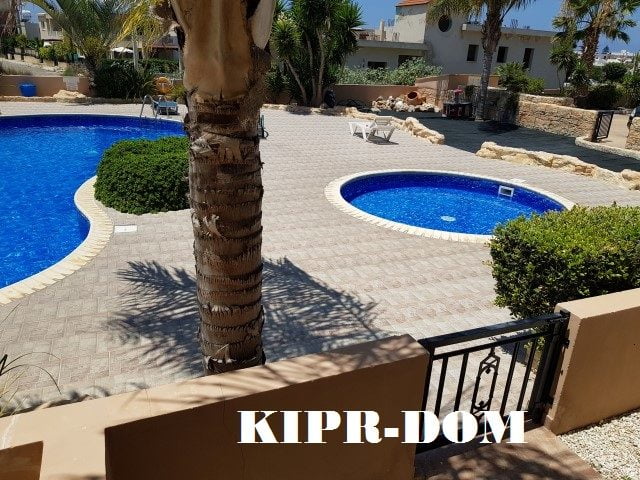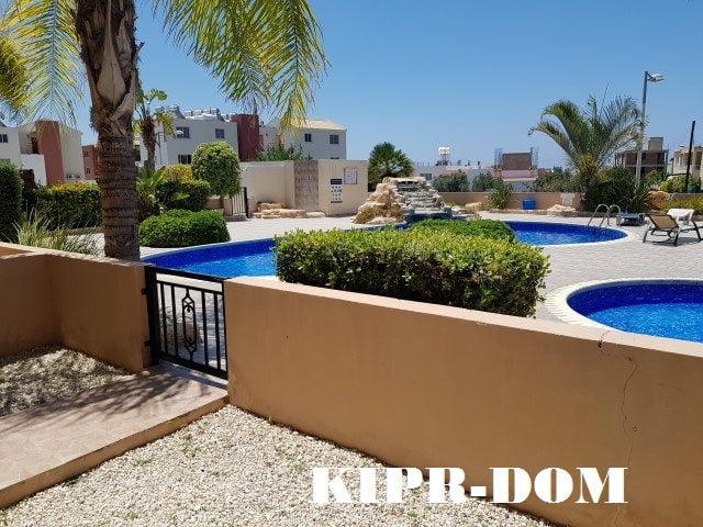 Spacious two-bedroom corner apartment on the ground floor with private courtyards on both sides and a roof terrace are offered for sale. The complex has two pools, parking lots for residents and their guests, a beautiful communal area. The apartment also has a private roof terrace where you can relax and enjoy the sea and city view. Numerous shops, the beach, bus stops are within walking distance.