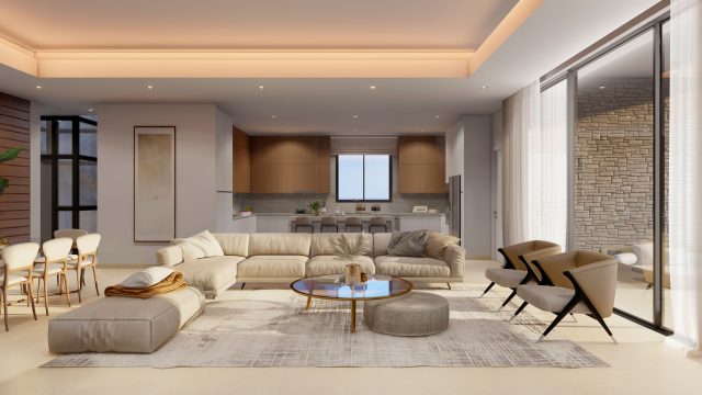 Главный уровень 1: Когда вы входите на виллу, вы попадаете в величественное фойе, которое задает тон роскошной атмосфере. Этот уровень в основном состоит из общих зон, предназначенных для обеспечения плавного перехода между внутренними и внешними жилыми помещениями. Основные моменты этого уровня включают в себя: Просторная гостиная, украшенная элегантной мебелью, предлагает захватывающий вид на море, она служит идеальным местом для приема гостей или проведения времени с семьей.