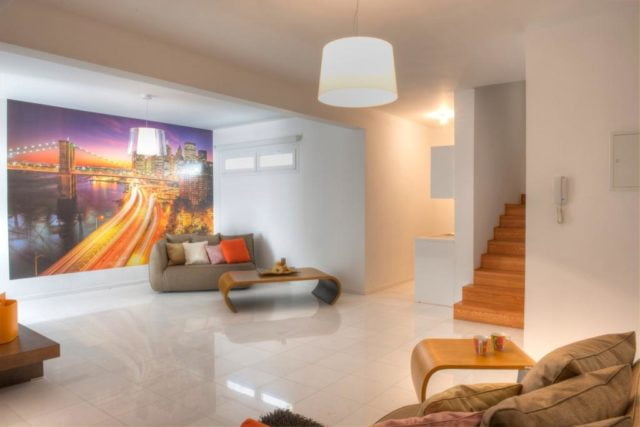 Thermo and sound insulation were made during construction; thermo-brick which allows saving electricity in the summer and winter. The decoration with natural materials: wood, stone, glass, metal.