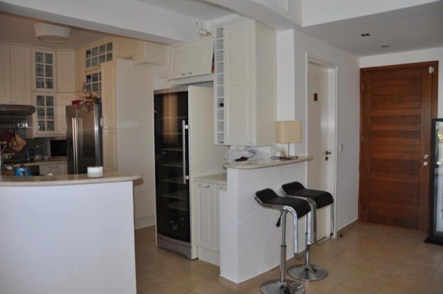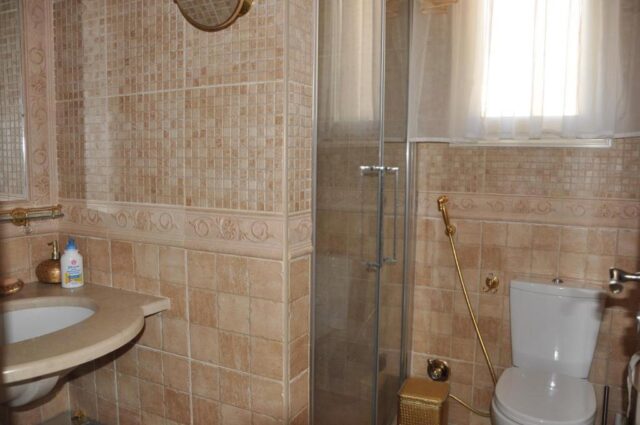 The villa has 3 bedrooms, a flat-screen TV with satellite channels, an equipped kitchen with a dishwasher and a microwave, a washing machine, and 2 bathrooms with a shower.