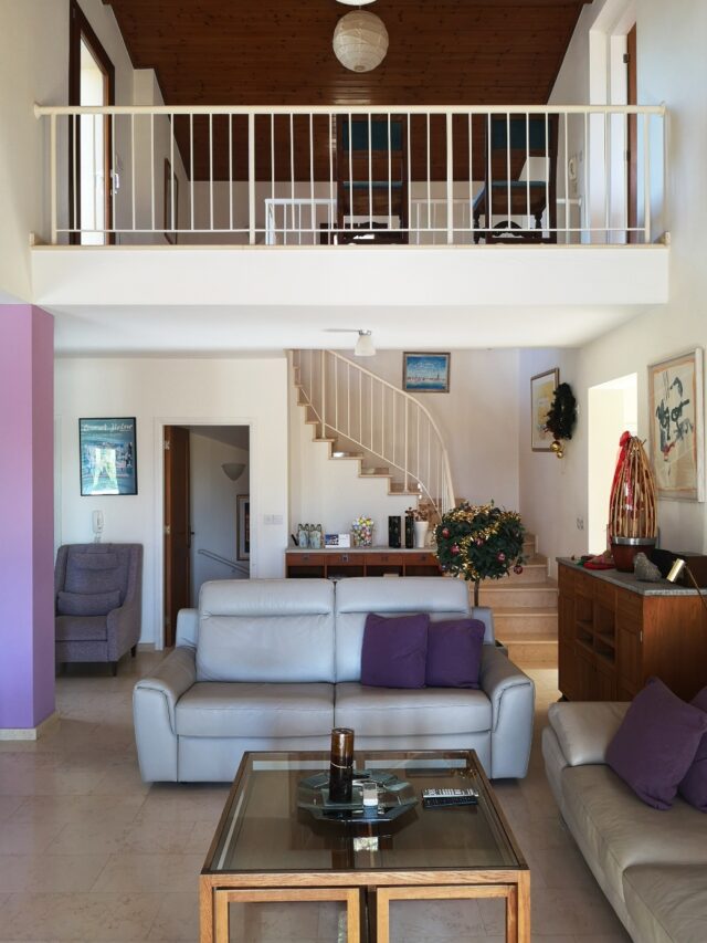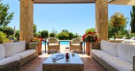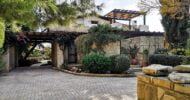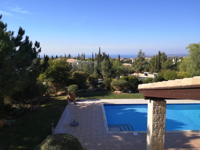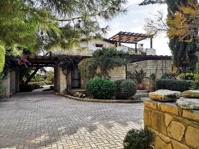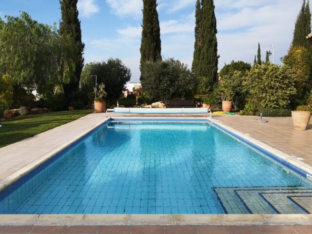 Stepping out of the living and dining rooms through the wonderful French doors, one will notice the gardens below that reflect traditional Cypriot landscaping, a very large swimming pool and a very spacious terrace and BBQ area to accommodate large gatherings when socializing. The garden offers mature trees and aromatic plants and shrubs.