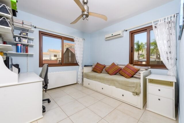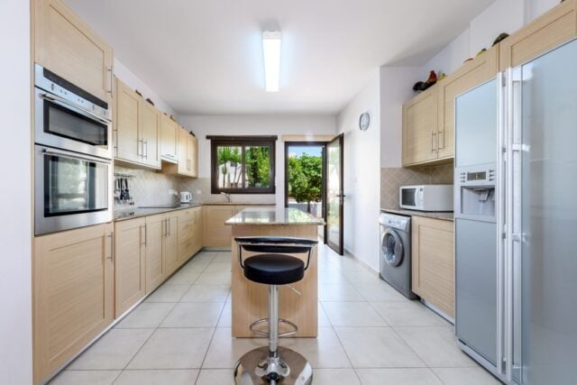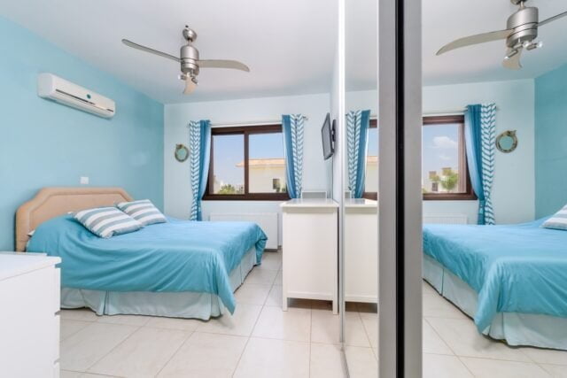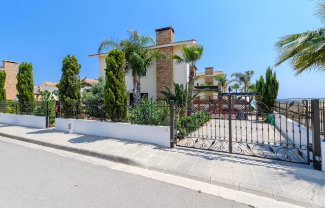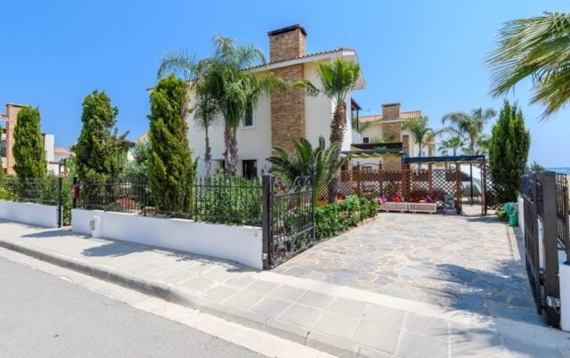 This impeccably maintained 4 bedroom seaside villa with private pool is surrounded by a vibrant garden plot with views across green fields to the sea and picturesque harbour. Located in a gated seafront development, the villa is only 120 metres from the water’s edge and only 30 minutes’ drive from Larnaca airport, easily accessing Ayia Napa & Protaras tourist areas, the new marina, and the myriad pristine beaches of Eastern Cyprus.