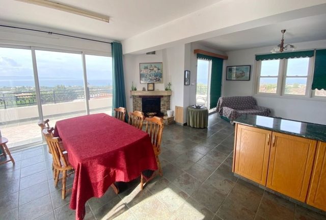 Эта недвижимость с 4 спальнями расположена в тихом районе Агия Марина Хрисохус, на северо-восточном побережье Пафоса. Дом построен на большом многоуровневом участке площадью чуть менее 3000 м2 на трех разных уровнях с панорамным видом на море и горы. Он очень просторный и включает в себя: кухню открытого плана, столовую, гостиную и одну спальню с двуспальной кроватью на 1-м этаже и 3 спальни с двуспальными кроватями на 2-м этаже. Во всех спальнях есть большие встроенные шкафы, вид с балкона и больших веранд.