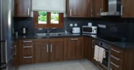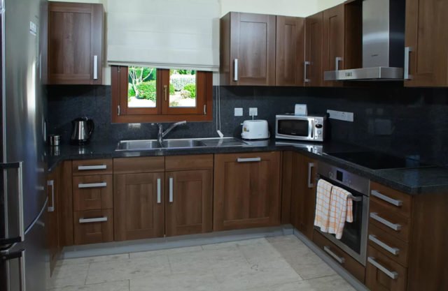The Italian hardwood kitchen is fully equipped with granite worktops and selected utensils.