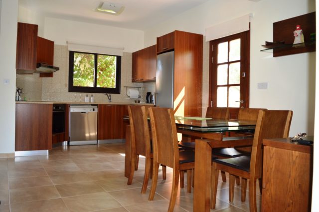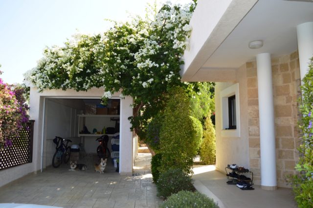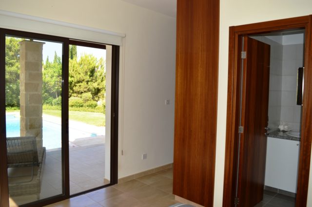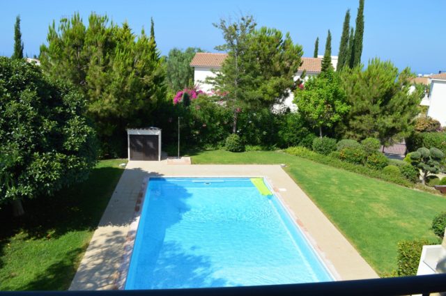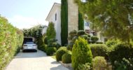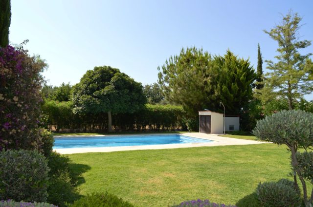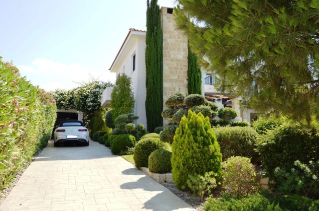 A simply magnificent residence adjacent to a large green area with some stunning sea views. This property really is immaculate and has been meticulously maintained by the current owner. Fabulous roof terrace and heated private pool with electrically operated cover. The house is situated at the end of a cul de sac and approached by a long impressive driveway adjacent to a lovely green area filled with indigenous trees and shrubs. When entering the house, there is a spacious hallway leading to a large double aspect living room with a feature working fireplace and patio doors leading to the beautiful pool and garden.There is an open plan large kitchen/dining room with a door to the rear garden and patio doors to the covered veranda and pool and lawn. The appliances are Bosch – washing machine, dishwasher, oven, hob and extractor hood. There are granite worktops as well. On the ground floor there is also a guest wc and bedroom 2. This room is double aspect, has patio doors to the garden, and a luxurious en-suite shower room with a wash hand basin set into a granite worktop above a vanitory unit.