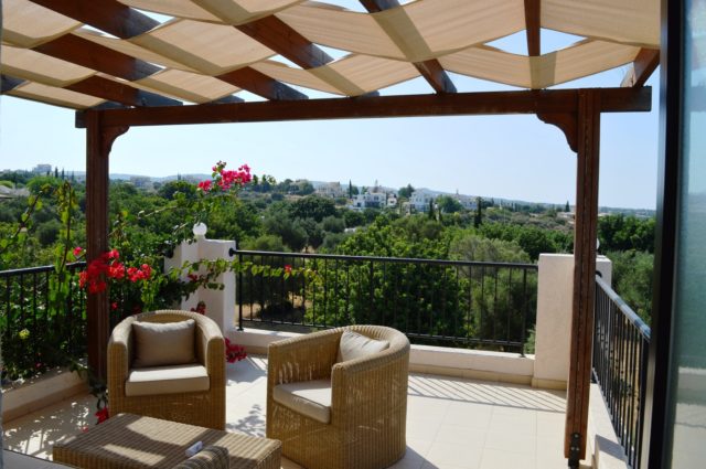 Bedroom 3 again is double aspect, has patio doors to a private balcony. Bedroom 4 is also a double. There is a large door room/ironing room with a window off the landing. There are then granite stairs to a roof garden with the most amazing views, with a shaded pergola and a full set of garden furniture. All the bedrooms have fitted wardrobes and the whole house has air-conditioning.