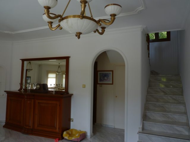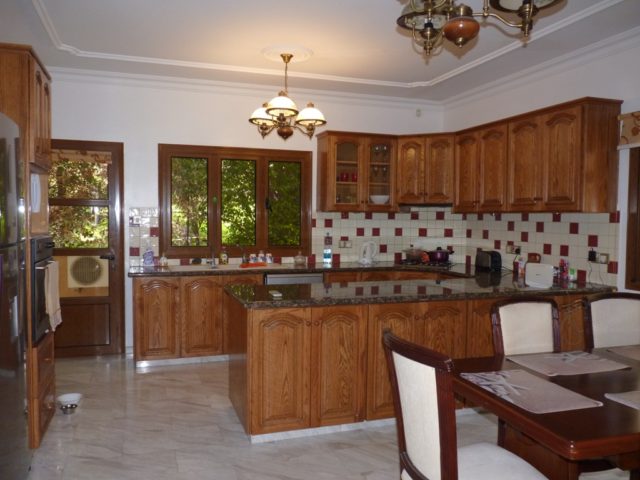 The villa is located in a quiet and green place respectable area of Limassol – Ayios Tychonas, a few minutes drive to the sea. The windows and verandas of the house overlook the sea. On the plot there is a beautiful garden with decorative trees and bushes, there is a private summer gazebo surrounded by greenery, a garage for two cars, a swimming pool with a new liner and mechanisms. The entrance to the house begins with a spacious hall, to the right of which there is an office with a fireplace, a dining room with an open plan kitchen. On the left is a spacious living room with a fireplace, and passing through a cozy arch you can get to the bathroom and storage room. Further, a marble staircase leads to the second floor, where there is a second living room with a balcony, a bathroom, three bedrooms (the main one with its own bathroom) with balconies.