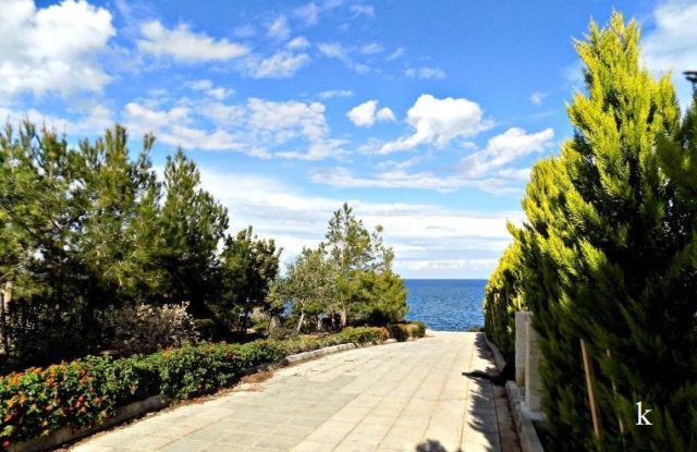 The elegant villa is located in a gated secured complex on the first line from the sea in a very quiet and green area with a beautiful clean beach (sand/pebbles) and a tennis court.
