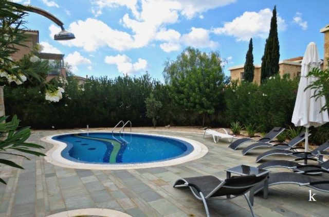 The house consists of three floors: on the first (ground floor) – auxiliary kitchen with laundry, bedroom, bathroom, separate access to the pool. On the second (main) there is a living room with a fireplace, a dining room, a kitchen, a bathroom, an exit to the veranda and a garden. On the third floor there are 2 bedrooms (the master bedroom has its own dressing room, a bathroom, a balcony) and a bathroom. The house has central air conditioning, marble stairs, shutters on the windows and balcony doors that prevent direct sunlight. High quality finishing and building materials.