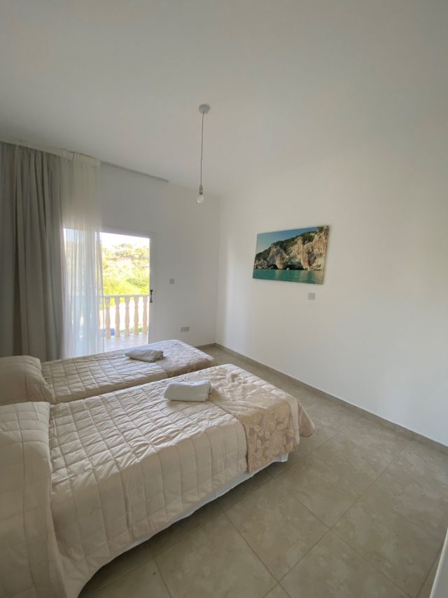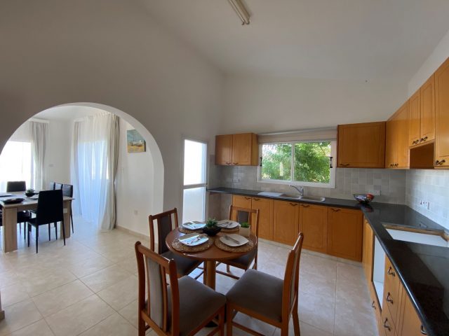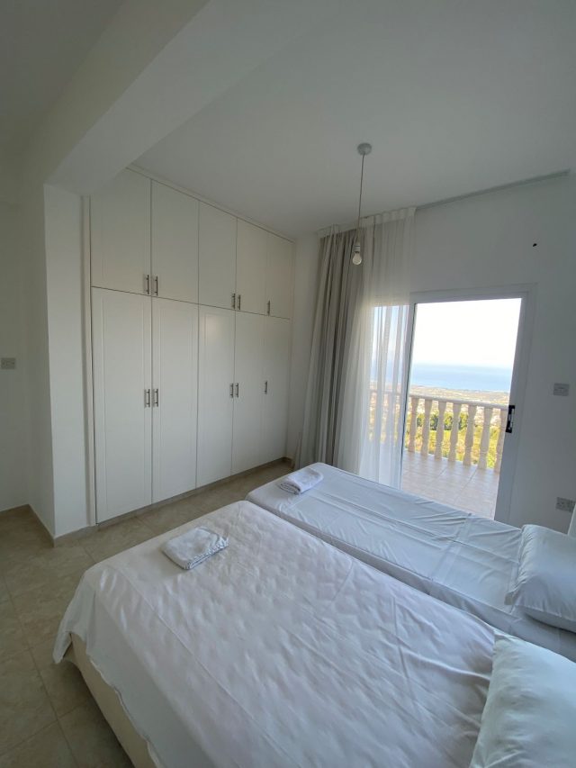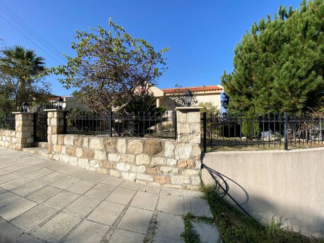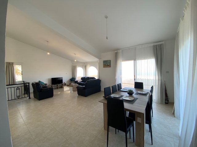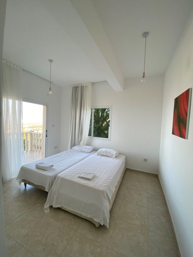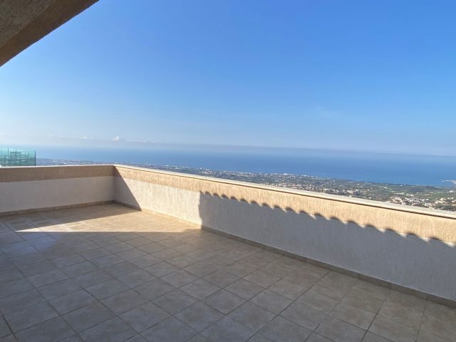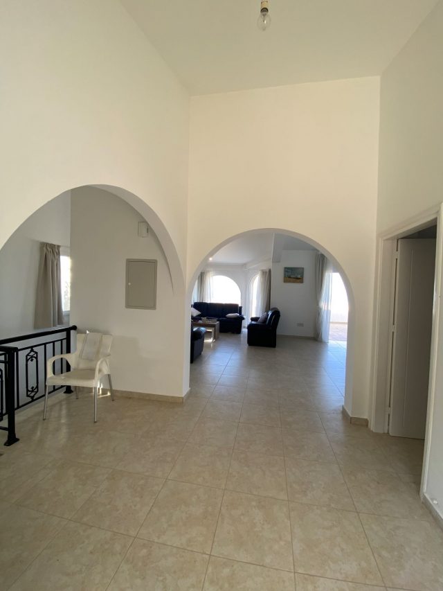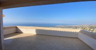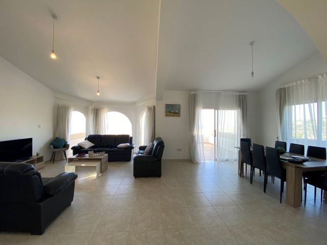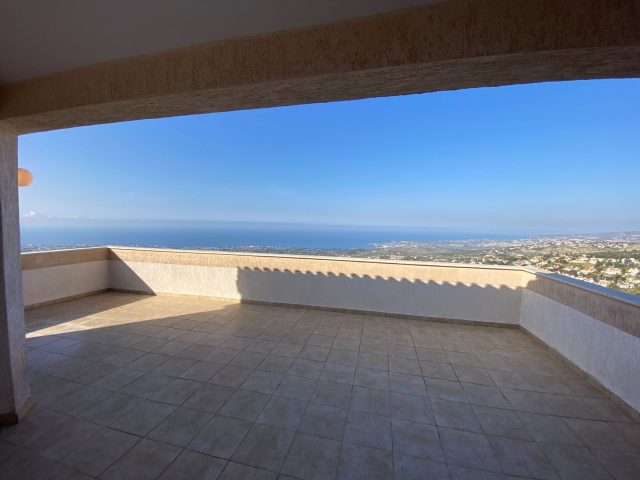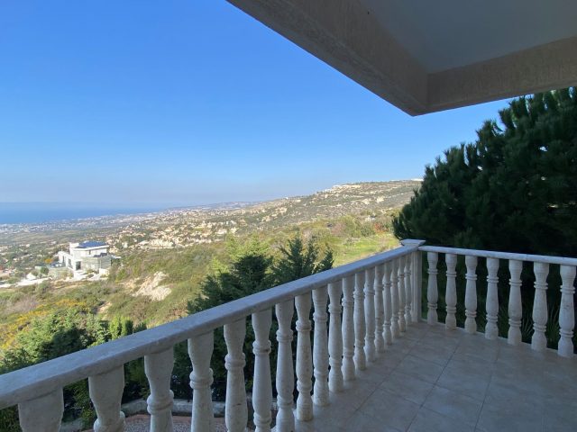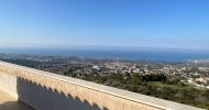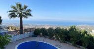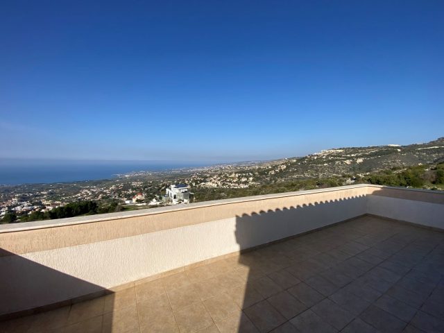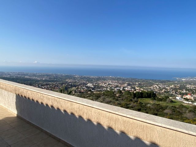 A luxury detached three bedroom villa elegantly set on the peaks of the St. Neophytos mountains commanding one of the finest unobstructed views over Pafos. The quiet location offers the peaceful lifestyle with Pafos town, offering many amenities (like International School of Pafos), only a 10 minute drive away. The villa consists of 3 levels and 2 entrances. The ground floor level is a big covered parking part of this can be used as additional flat. Three good size bedrooms on the first floor with balconies offering panoramic views. The top level includes a large size living area, dining room, separate kitchen, big veranda with fantastic sea and sunset views, the main entrance is also on this level.